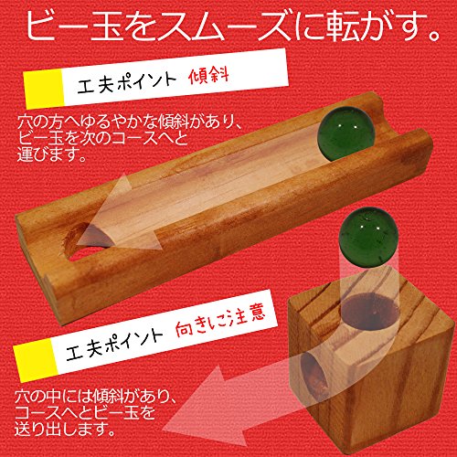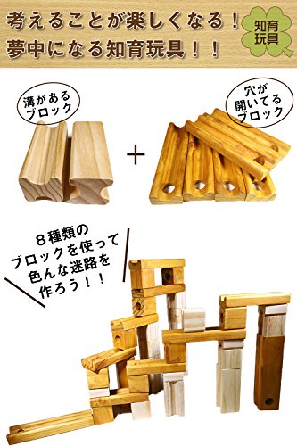 - 考えることが楽しくなる!夢中で遊べる知育玩具。平面に溝があるタイプ、中央に穴が開いているものなど8種類のブロックを使って立体迷路を作り、スタート地点からゴール地点までビー玉を転がして遊ぶおもちゃです。ビー玉がゴールまで滑らかに転がるように、想像力を働かし、計算して積み木を組み立てて遊びます。