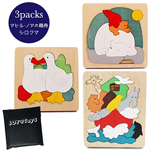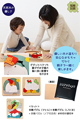 B.H. Select パズル 多層 木製 型合わせ 積み木 ブロック 知育玩具 幼児向け 誕生日 クリスマス プレゼント ギフト 入学祝 自由な発想・想像力を育む JOY@Multilayer puzzle (Kセット:しろくま+あひる+ノア)