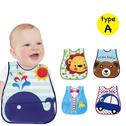B.H. Select ベビー エプロン 洗える 油が落ちる 防水 スタイ ビブ ポケット付き(5枚組) + ループ付ワッフル6重ガーゼタオル (3枚組)お得セット(Aセット) BH70-1/