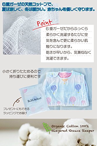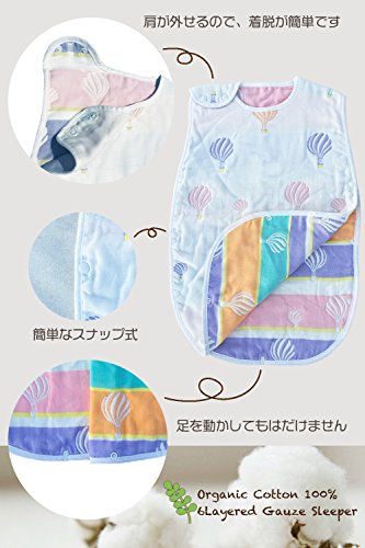 ガーゼ スリーパー 6重 オーガニック コットン 寝袋 掛ふとん ベビー 新生児 から使える ふんわり やわらか 肌ざわり 出産祝い 誕生日 プレゼント ギフト【各種安心保証】 (バルーン 40cm×60cm)