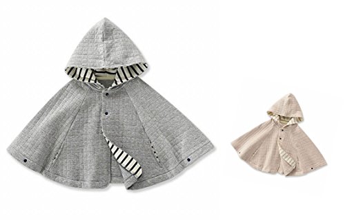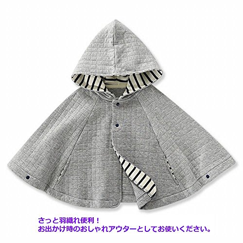 B.H. Select フード付き ベビーポンチョ ニットキルト生地 アウター ベビーケープ お出かけ 出産祝い プレゼント に最適 (Sサイズ(70-80 グレー)) BH79-1