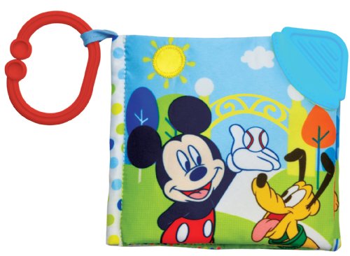Start baby's library with this multi tasker of a book featuring the one and only Mickey Mouse. There are soft pages to explore, a teether to relieve the aches of teething, fun squeaky sounds, and a crinkle texture to keep your baby entertained for hours. And take it anywhere by using the on the go clip.