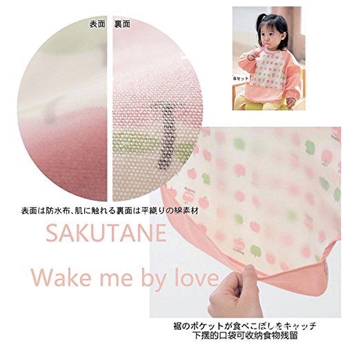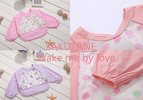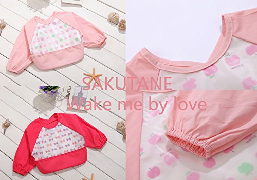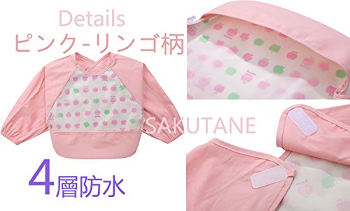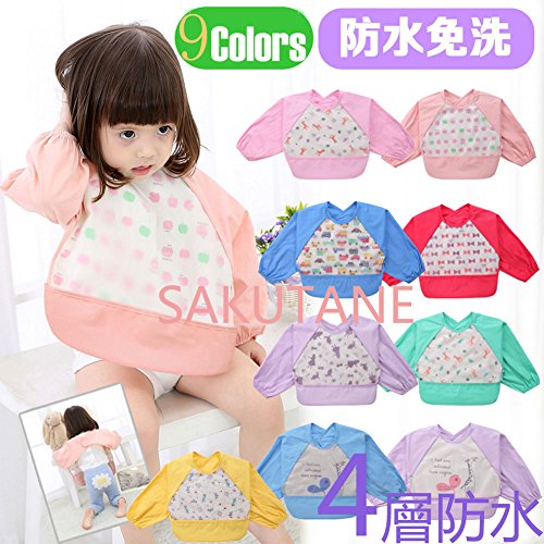 SAKUTANE(JP)ベビー 食事用 長袖 エプロン 可愛い スモック式 赤ちゃん ビブ 防水 折り返しポケット ウンタッチテープ付き 6~36ヶ月 カラバリ ロングスリーブ 薄手 生地 綿 お着替え 大活躍
