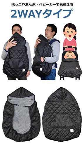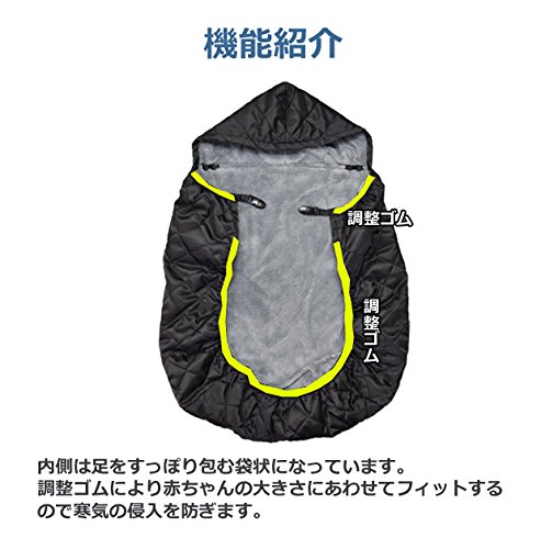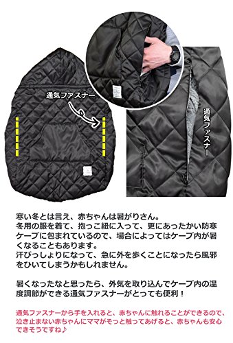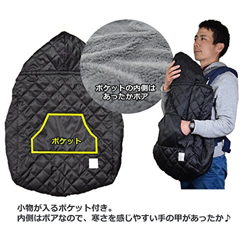 抱っこ紐用 防寒カバー 裏地ボア キルティングケープ ブラック
