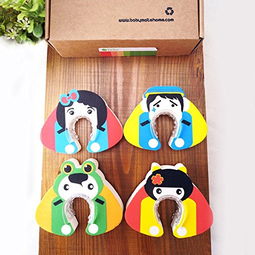 BABY MATE 4 PCS Cute Non-Slip Baby Safety Finger Pinch Guard with Inner Teeth (5" X 4" Big, 1" Thick) - Cartoon Door Stopper Cushion - Finger Pinch Door Guard - Finger Pinch Preventer for Drawers [並行輸入品]