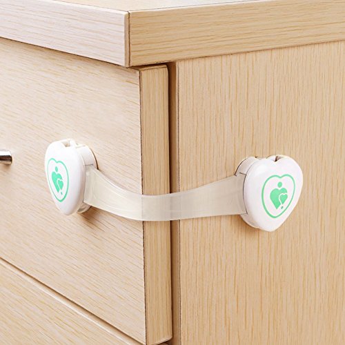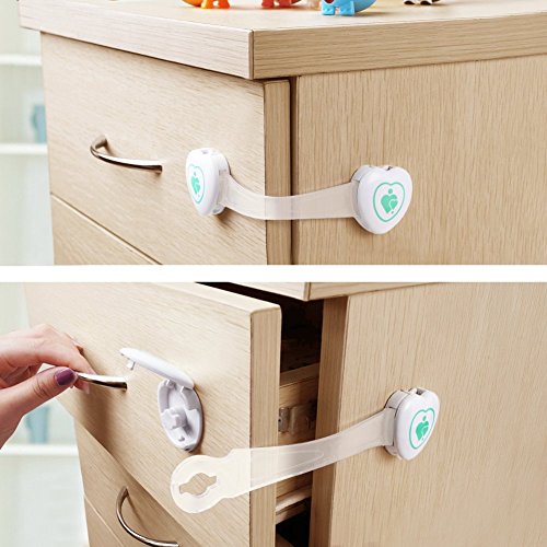 - MORE ATTRACTIVE VALUES FOR HAPPY PARENTING - Stylish ABS exterior decorated in adorable images of double hearts; a display of care and affection, blending in any home decor to meet your esthetic needs - Completely Phthalate Free, Lead Free, BPA Free - Sturdy; Lightweight; Corrosion-resistant; High temperature resistant - Additional adhesive is included so you can reuse your locks without buying new ones.