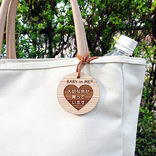 - マタニティのシンボルマークBABY in ME(ベイビーインミー)の木製(天然杉)のバッグチャームです。