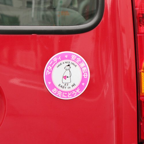妊娠中の慎重&安全運転をマタニティのシンボルマークBABY in ME(R):ベイビーインミーのイラストが、後続車にやさしくメッセージします。取り扱いが気軽なマグネットタイプです。BABY in MEは、日本助産学会からもご推薦いただいています。BABY in MEについて詳しくは、公式サイトをご覧ください。