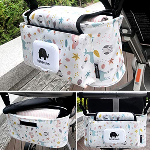 BABYBOBO ベビーカー用バッグ ベビーカー ドリンクホルダー オーガナイザー ポケット おしゃれ 小物 収納 大容量 オックスフォード材質(ホワイト)