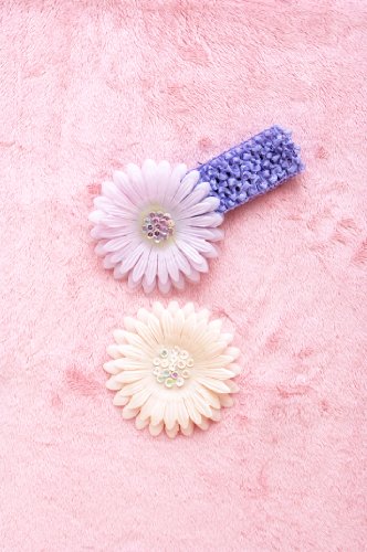 - 大きなお花飾りが2コついてくる、気分によって付け替え可能な柔らか素材のヘアバンド