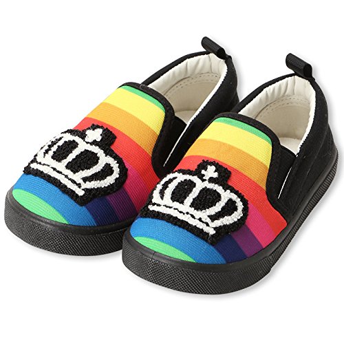 BABYDOLL(ベビードール) 王冠ワッペン付 スリッポン 靴 シューズ スニーカー ベビー 14cm レインボー柄