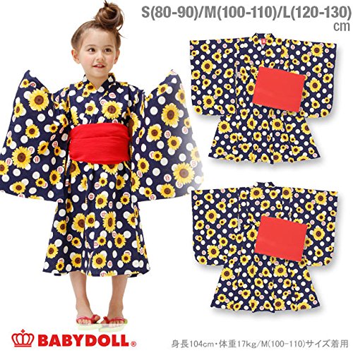 BABYDOLL(ベビードール) ひまわりドット浴衣ワンピース 帯付き-子供服 女の子 甚平 じんべい ベビー キッズ -0398K L(120-130)