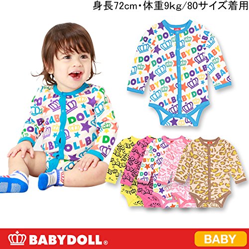 ベビードール ベビー肌着 バラエティデザイン 7分袖ボディスーツ型 子供服 90 ブラウン/ヒョウ柄