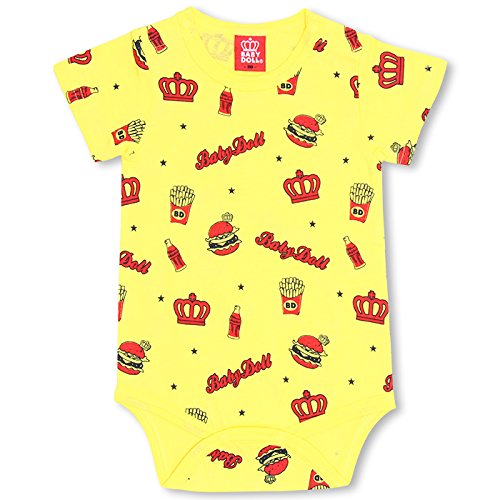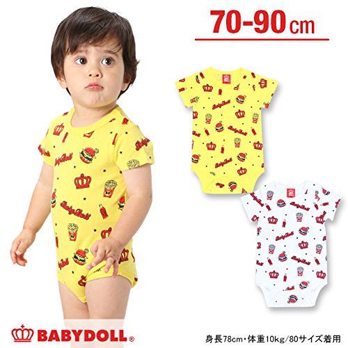 【アウトレット品】 ベビードール ベビー肌着 バーガー柄(半袖ボディスーツ型) 子供服 90 イエロー