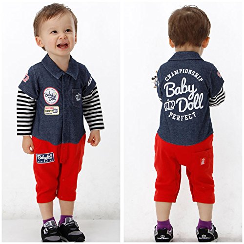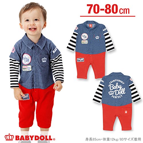 BABYDOLL(ベビードール) シャツ風ロンパース 子供服 男の子 女の子 0134B 80cm レッド