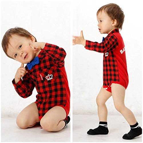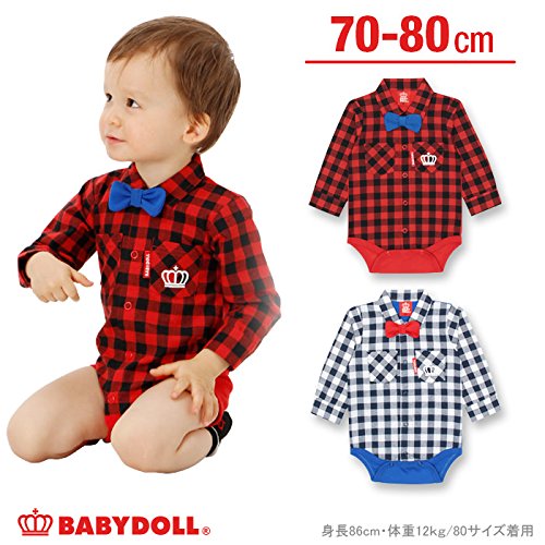 BABYDOLL(ベビードール) ボディスーツ チェック ロンパース 子供服 男の子 女の子 70-80cm 新生児 ベビー 0160B 80cm レッド