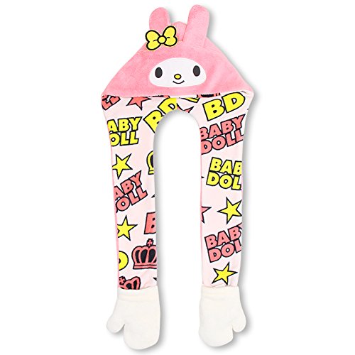 ハローキティ&マイメロの耳付きなりきりフードミトンマフラー