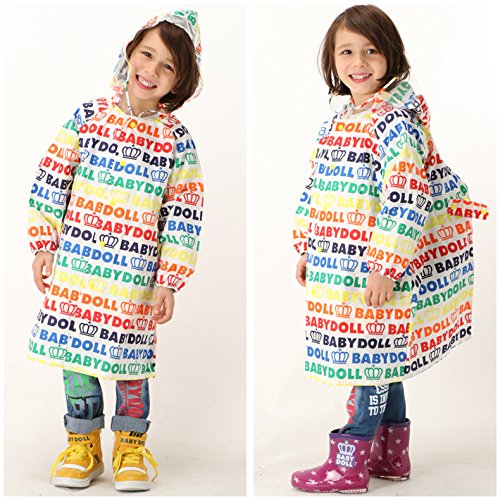 BABYDOLL(ベビードール) ランドセル対応 収納袋付 カラフルロゴレインコート(合羽/雨具) 子供服 M(対応身長115-125cm) ホワイト