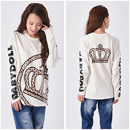 ベビードール ヒョウ柄王冠ロンT 大人 男女兼用 L オフホワイト