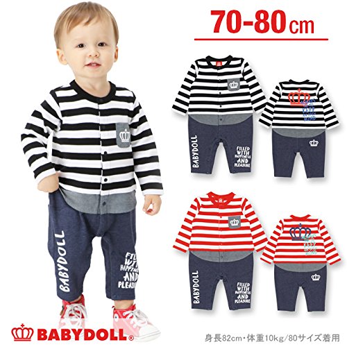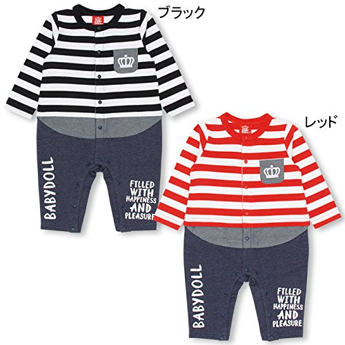 ベビードール ボーダー長袖ロンパース 子供服 70cm ブラック