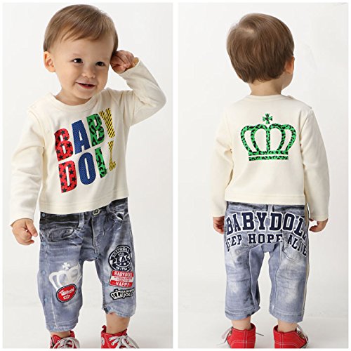 ロゴ×星、アニマルなどの柄MIIXのカジュアルPOPなデザインにフェイクプリントデニムをコーデしたレイヤード風ロンパース