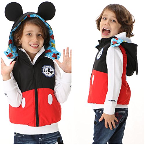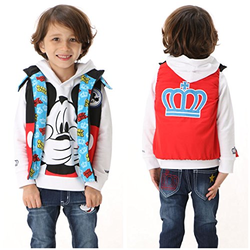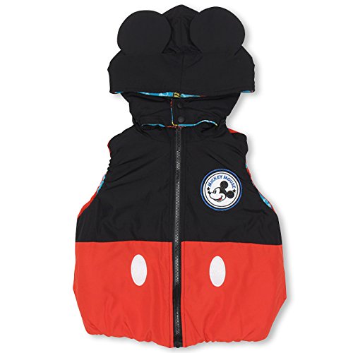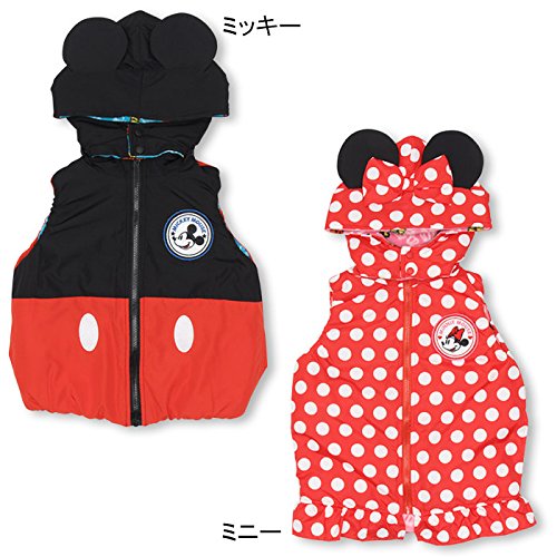 ミッキー&ミニーの耳付きが可愛い 毎年人気の中綿ベスト ポリエステル×フリースで風を通さず保温性バッチリ 首元までしっかり防寒出来るフードはスナップボタンで取り外しOK。 ごわつかないから重ね着苦手なキッズも大満足