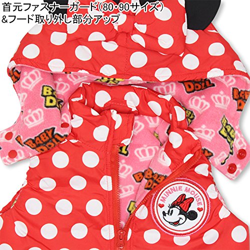 本体/中綿/裏地: ポリエステル100% リバーシブル タフタ/フリース素材 耳付きフード取り外し可(スナップボタン) フロントファスナー/80~90cm:ファスナーガード付 サイドポケット×2 刺繍ワッペン 昇華プリント ※ミニーのみ裾フリル ※写真のプリント位置と多少の誤差が生じる場合があります。