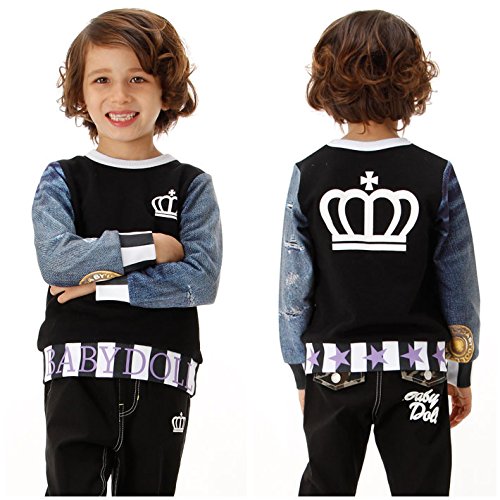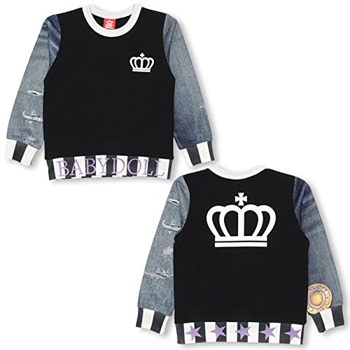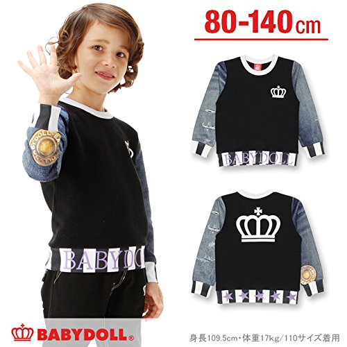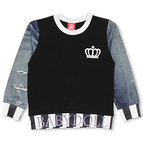 ベビードール デニム総柄切替トレーナー 子供服 140cm ブラック