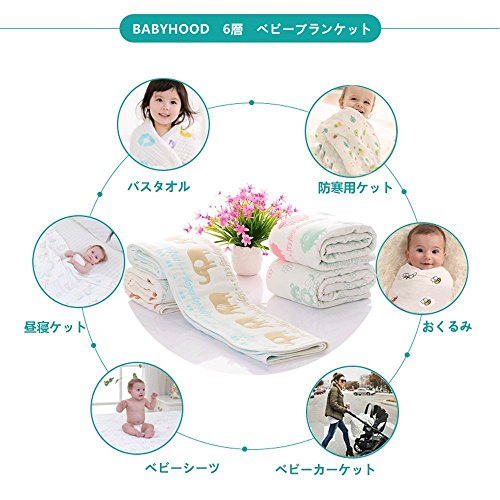 BABYHOOD コトン100% 6層 ガッゼ ベビーブランケット 新生児おくるみ 赤ちゃん毛布 入浴用 ベビーバスタオル 子供布団 夏用 110 * 110cm …