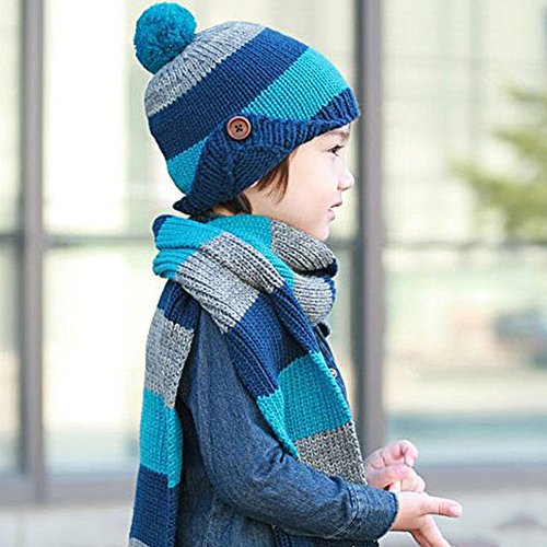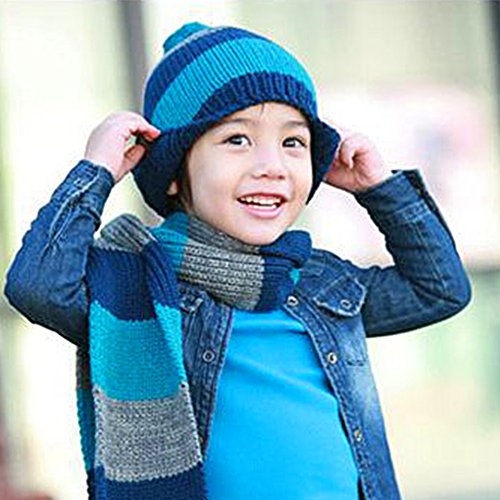 ニット帽 子供キッズ 可愛い ニット帽子 スカーフセット 女の子 男の子 ニットキャップ 秋 冬 防寒通学 通園 クリスマス プレゼント 赤ちゃん スタイリッシュ 耳まですっぽり覆われる クラーデション (蓝)