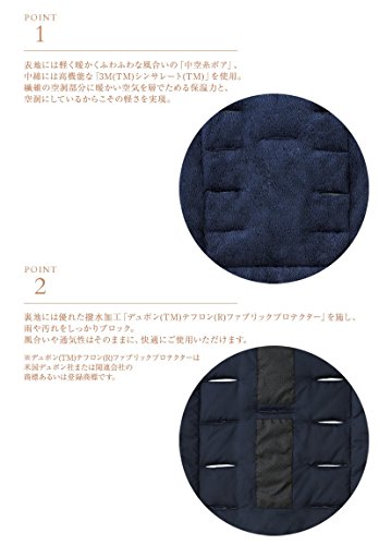 ・表地には軽く暖かくふわふわな風合いの「中空糸ボア」、中綿には高機能な「3M(TM)シンサレート(TM)」を使用。繊維の空洞部分に暖かい空気を層でためる保温力と、空洞にしているからこその軽さを実現。