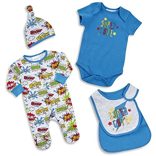 BABYTOWN新生児赤ちゃん少年Superhero Comicテーマ4 Pieceスリーセット カラー: ブルー
