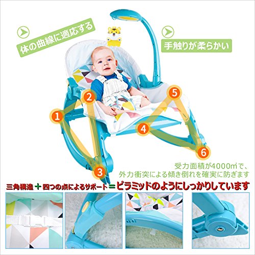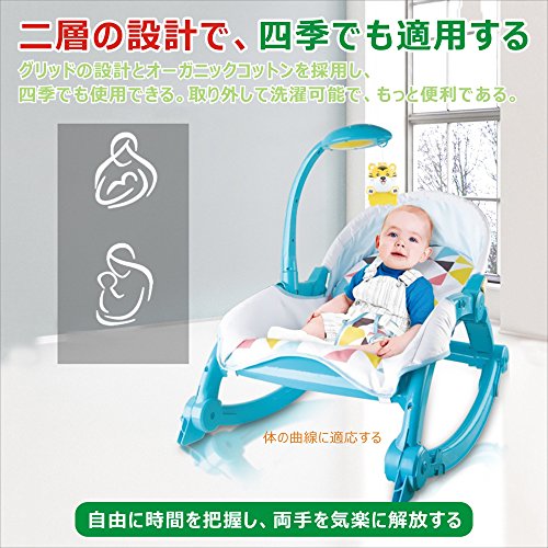 BBYY8001-S 子供のロッキングチェア ミニウムベース 赤ちゃん ベビーロッキングチェア 多機能 電動 ロッキングチェア ベビー 折りたたみいす ロッキングチェア こどもの日 スイングモバイル接続音楽再生機能付き椅子(ブルー)