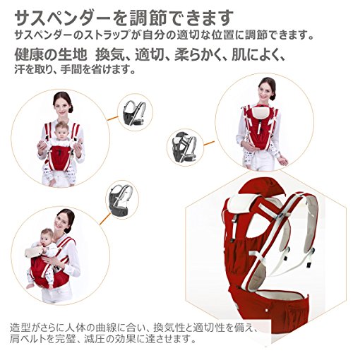 - ◆特別なデザイン:(1)65〜115cm広幅減圧ベルト。荷重:約20kgまでのベビー体重に耐える抱っこひも (2)H型肩紐、肩ベルト滑り落ち防止!(3)とても厚く30mm腰腹用緩和材料採用、ママの腰腹を守れる!(4)ソファーみたい柔らかいヒップシート、ベビーは長く座っても楽だ。(5)側面は収納袋付き!携帯とか収納できる便利なベビーハーネス。