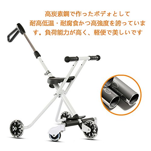 - 折り畳み設計で、簡易な操作だけで気軽く出かけます。折り畳んだ後、リュックサックに収められ、旅行、スーパー、公園へと出かけます。。。気軽で便利な四輪設定として、安定性が強く、転倒することがありません。