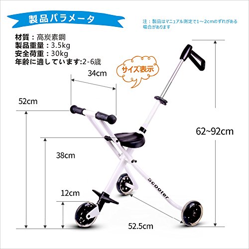 BBCT8001-W 3輪ベビーカー ユニバーサルホイール 収納や持ち運びに便 2-6歳から 3.5kg超軽量 耐荷重30kg ホワイト 子供用トロリー 高さ調整可能 折り畳んだら 小さくなるので 3C認証 高炭素鋼で作ったボデォとして 赤ちゃんが安全で お母さんが安心です