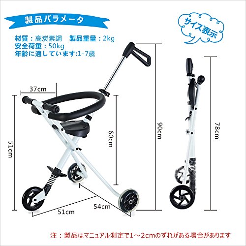BBCT9001-W1ショック3輪ベビーカー 軽量 ユニバーサルホイール 収納や持ち運びに便 1-6歳から 2kg超軽量 耐荷重50kg ホワイト 子供用トロリー 高さ調整可能 折り畳んだら 小さくなるので 3C認証 高炭素鋼で作ったボデォとして 赤ちゃんが安全で お母さんが安心です