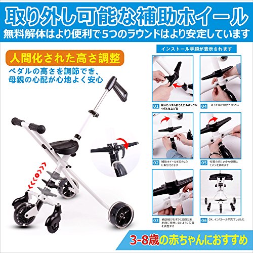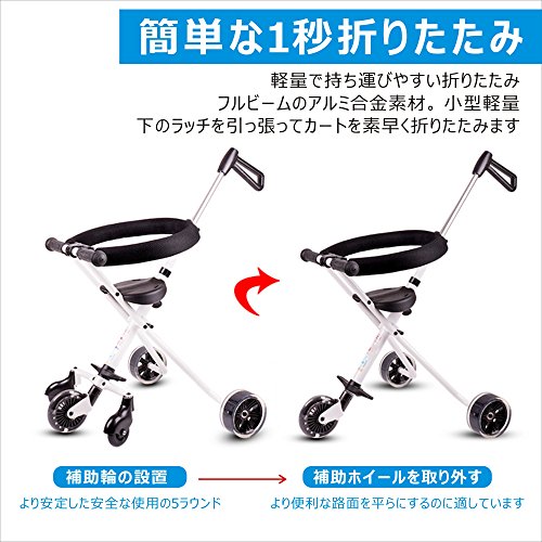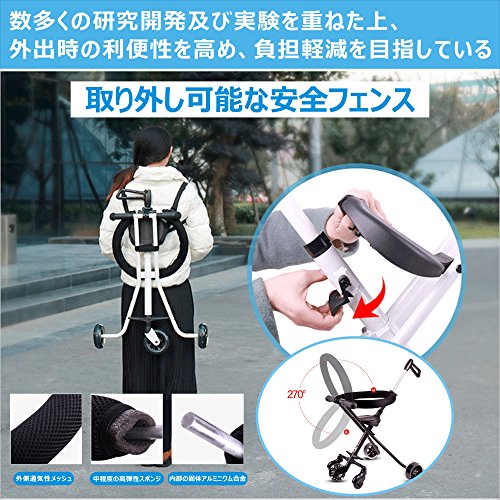 - 折り畳み設計で、簡易な操作だけで気軽く出かけます。折り畳んだ後、リュックサックに収められ、旅行、スーパー、公園へと出かけます。。。気軽で便利な四輪設定として、安定性が強く、転倒することがありません。