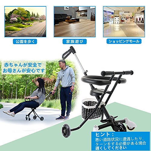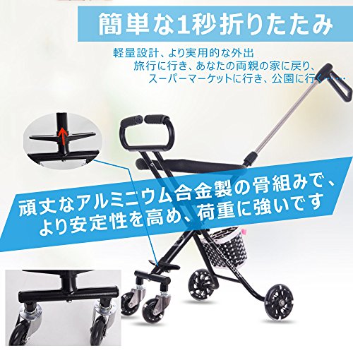 - 折り畳み設計で、簡易な操作だけで気軽く出かけます。折り畳んだ後、リュックサックに収められ、旅行、スーパー、公園へと出かけます。。。気軽で便利な四輪設定として、安定性が強く、転倒することがありません。