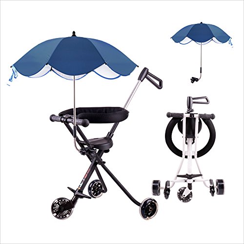 BBCT5001-Bベビーキャリッジ 子供用トロリー子供の三輪車 収納や持ち運びに便超軽量 耐荷重30kg子供用トロリー 折り畳んだら 小さくなるので 外出や旅行には最適折りたたみ式のベビーカーで 高さ調整可能 ブルー レッド 利で車の中や飛行機にも積められます 3-8歳から
