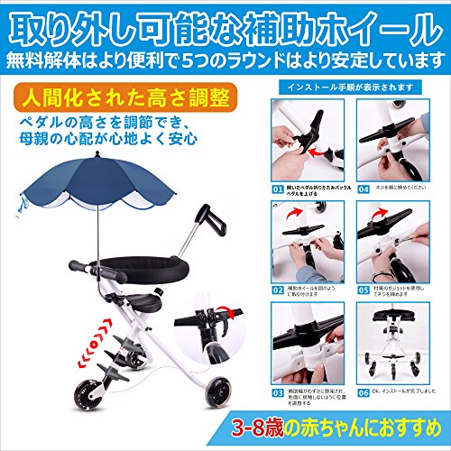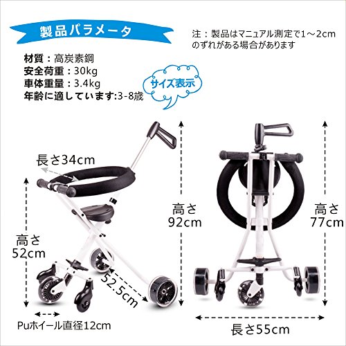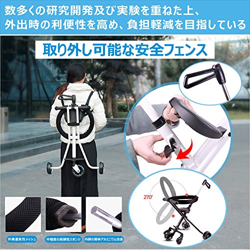 - 折り畳み設計で、簡易な操作だけで気軽く出かけます。折り畳んだ後、リュックサックに収められ、旅行、スーパー、公園へと出かけます。。。気軽で便利な四輪設定として、安定性が強く、転倒することがありません。