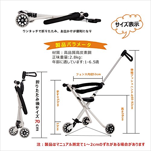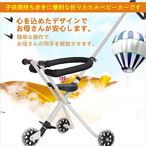 - 折り畳み設計で、簡易な操作だけで気軽く出かけます。折り畳んだ後、リュックサックに収められ、旅行、スーパー、公園へと出かけます。。。気軽で便利な四輪設定として、安定性が強く、転倒することがありません。