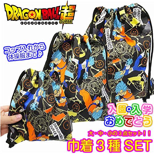 ドラゴンボール超(スーパー)巾着袋 きんちゃく 3点セット 孫悟空 ベジータ トランクス バンダイ コップ袋 給食袋 体操服袋 fo-drh3-600a 3種SET