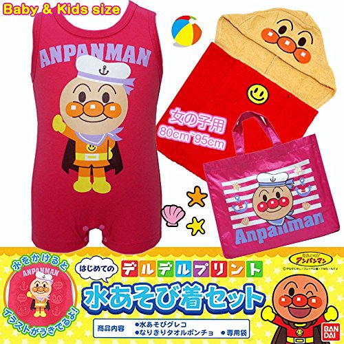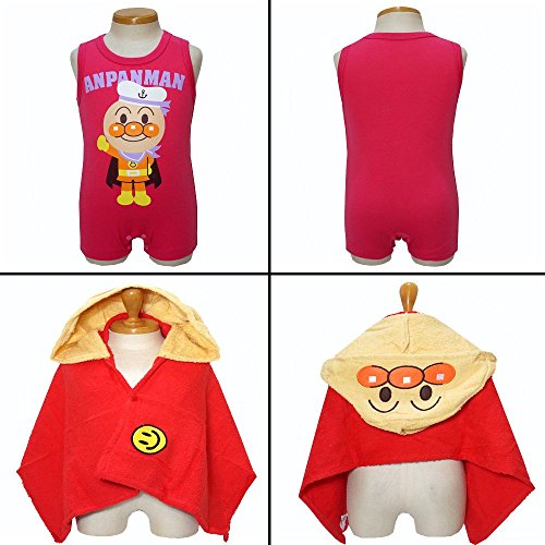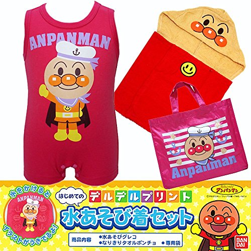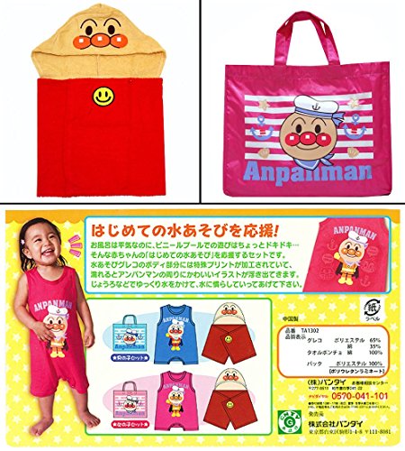 アンパンマン 水着 タオルポンチョ プールバッグ 水遊び3点セット 夏物 ANPANMAN (ピンク90cm)