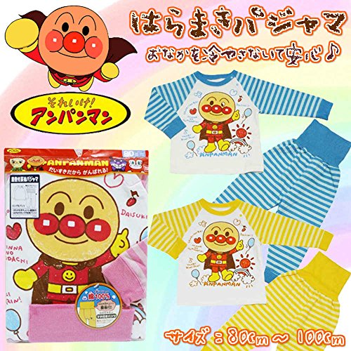 アンパンマン パジャマ ミニ裏毛 ボーダ- 腹巻付き 長袖 はらまき パジャマ Anpanman j-oa2875 100cm イエロー