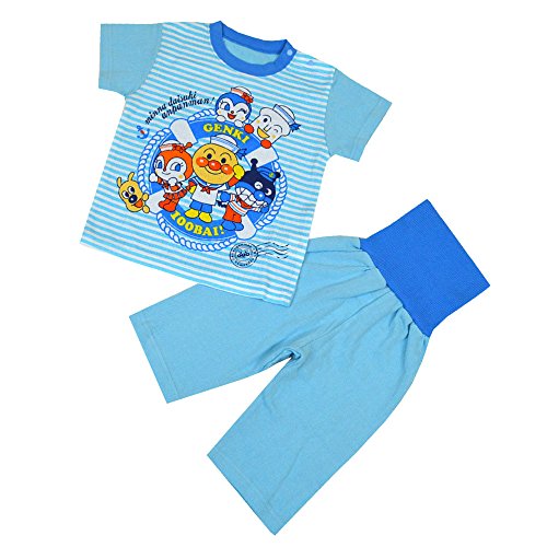 キッズパジャマ アンパンマン はらまき付き 半袖パジャマ 楊柳素材 夏物 子供用 Anpanman j-sa2654 100cm サックス