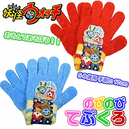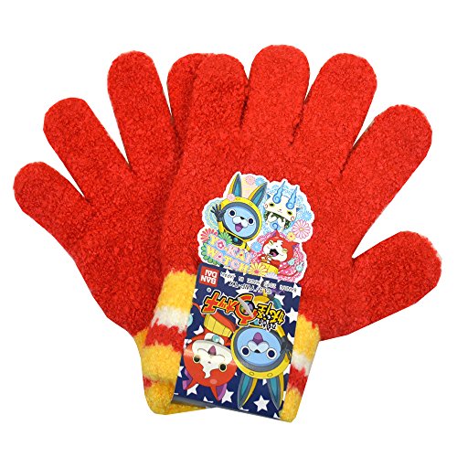手袋 キッズ 男の子 男児 妖怪ウォッチ てぶくろ 5本指 ニット のびのび (レッド17cm)