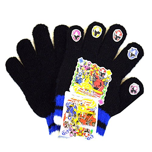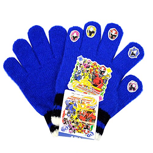 手袋 キッズ 男の子 男児 ニンニンジャー てぶくろ 5本指 ニット のびのび (ブルー17cm)