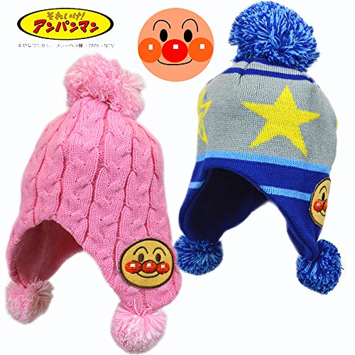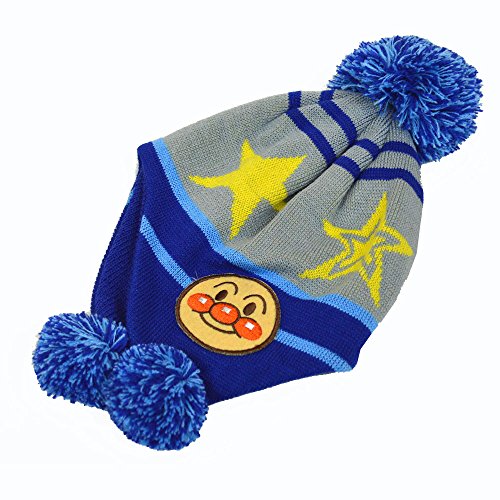 アンパンマン ぼんぼん付き 毛糸の帽子 男児 女児 ANPANMAN (ブルー46cm)