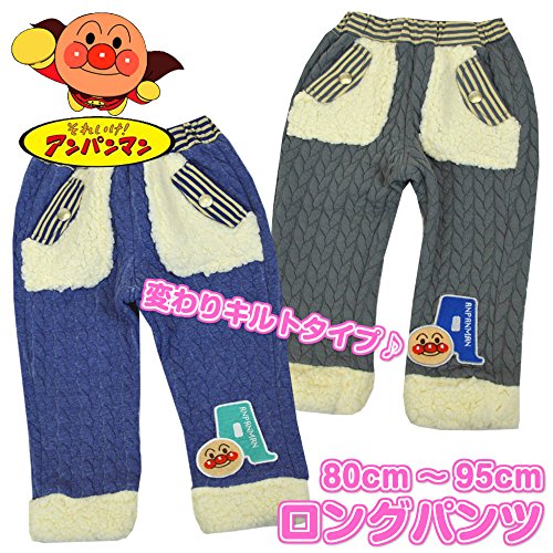 アンパンマン ケーブルニット風 キルト裾ボア ロングパンツ 男の子 女の子 Anpanman (ブルー80cm)